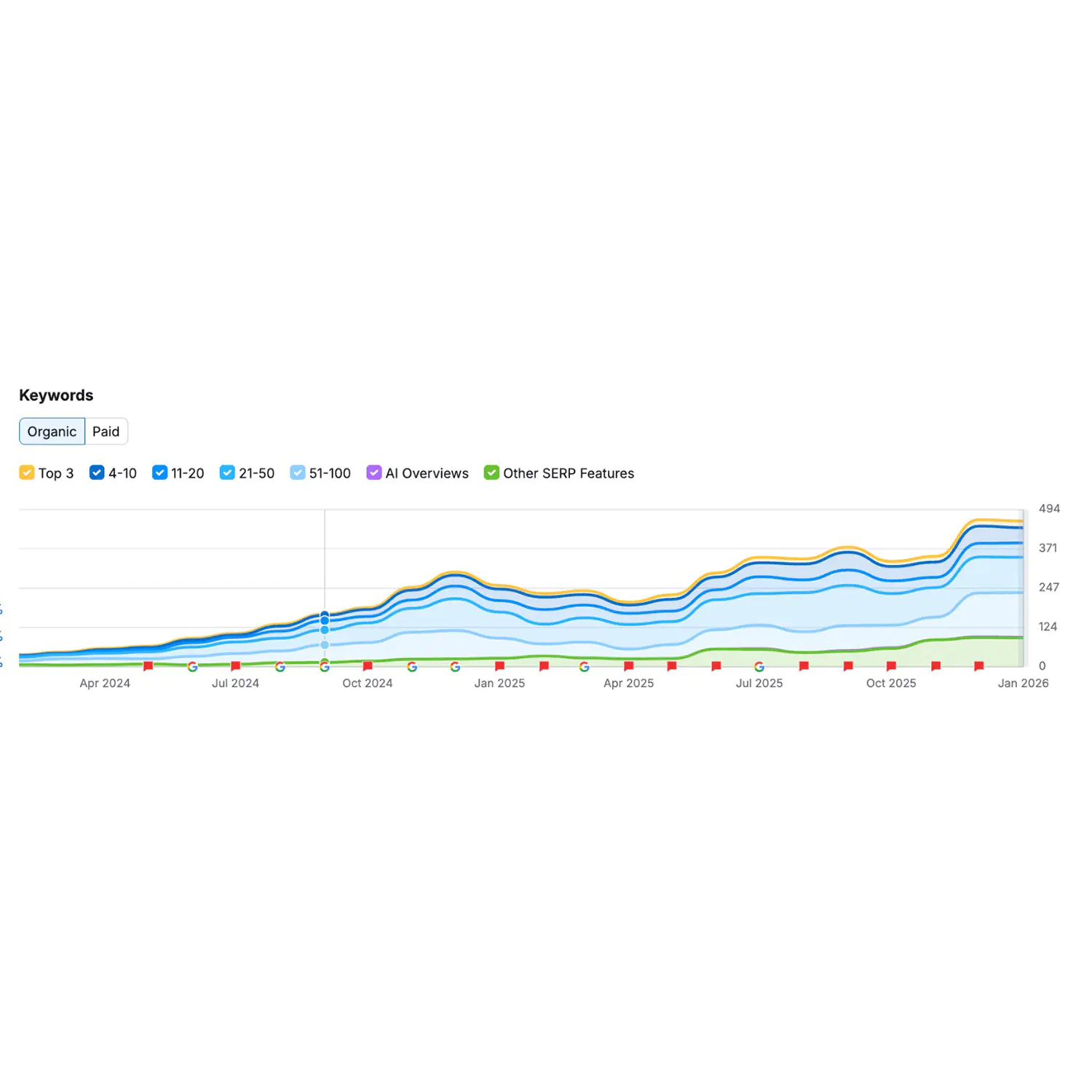 Increase high-intent organic traffic through SEO to drive long-term ROI by capturing users actively searching for the client’s products and brand.
