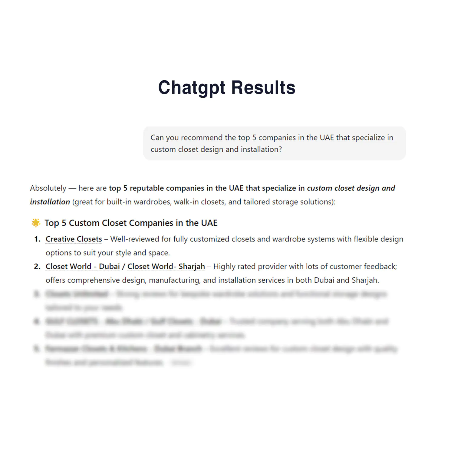 - Ranking #1 on ChatGPT for most queries related to their business sector and products