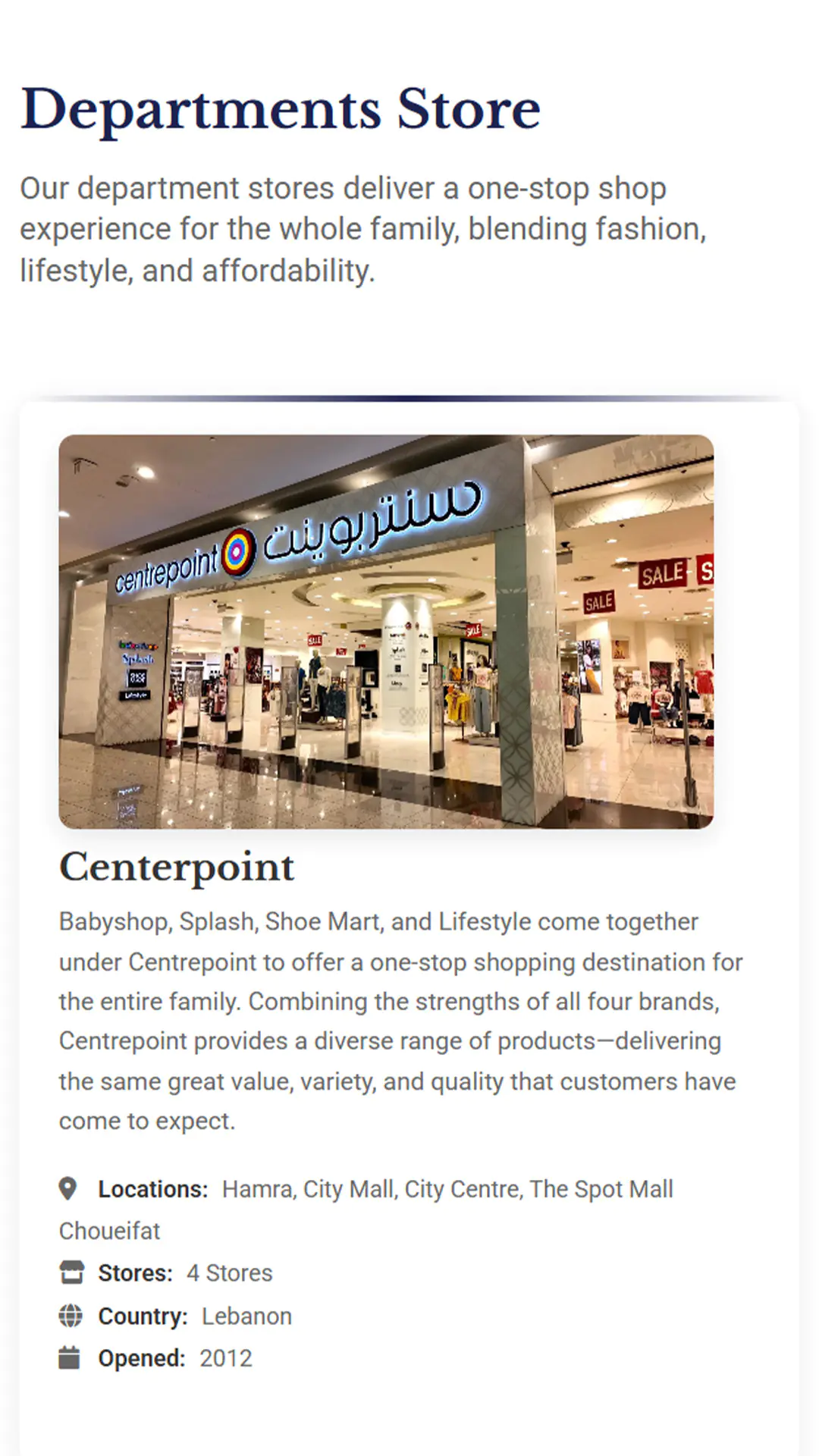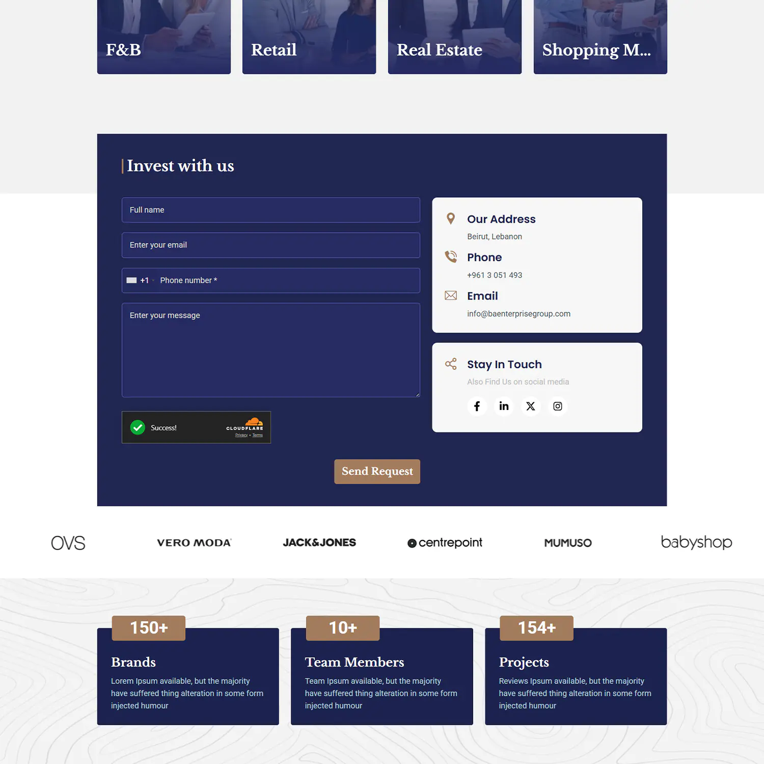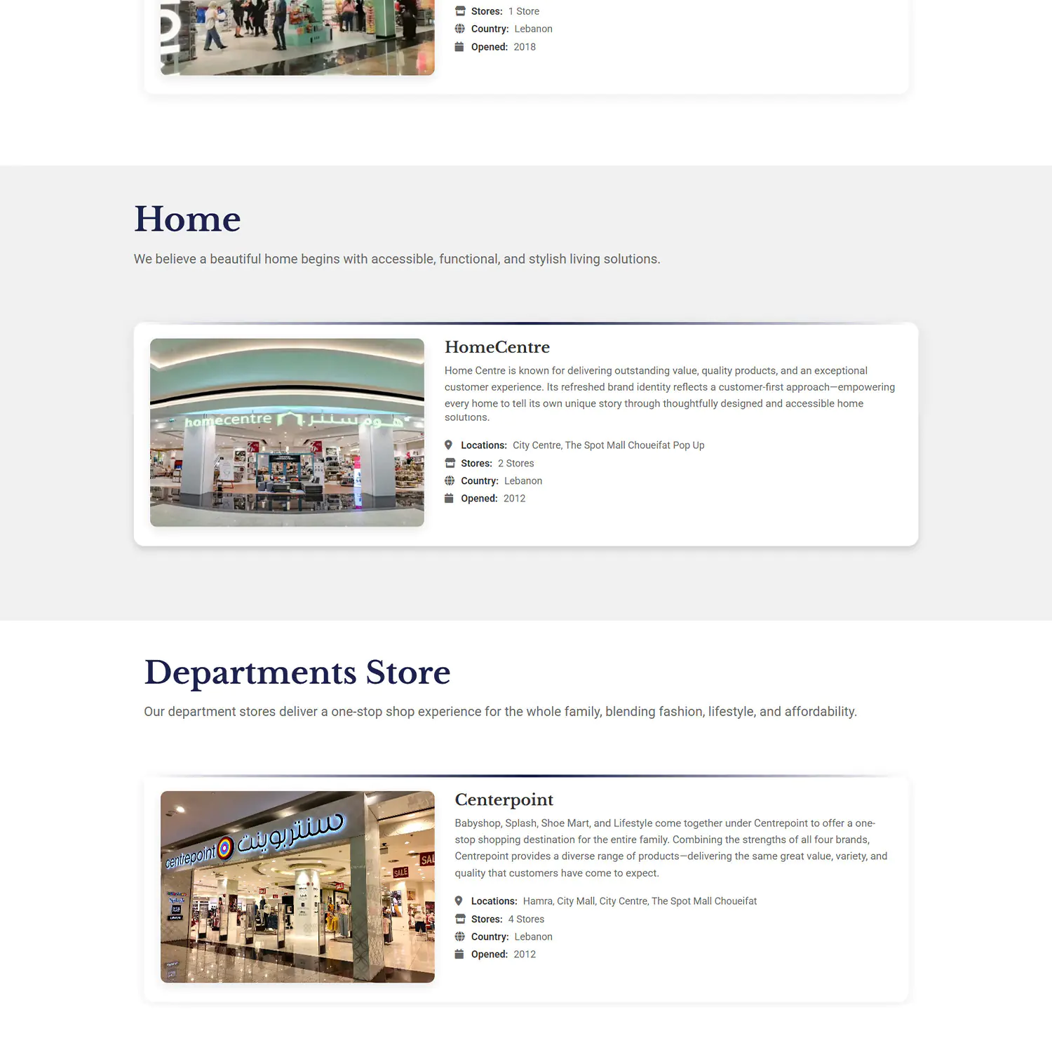 - Structuring content so users can instantly understand service categories (Retail, F&B, Real Estate, Malls)