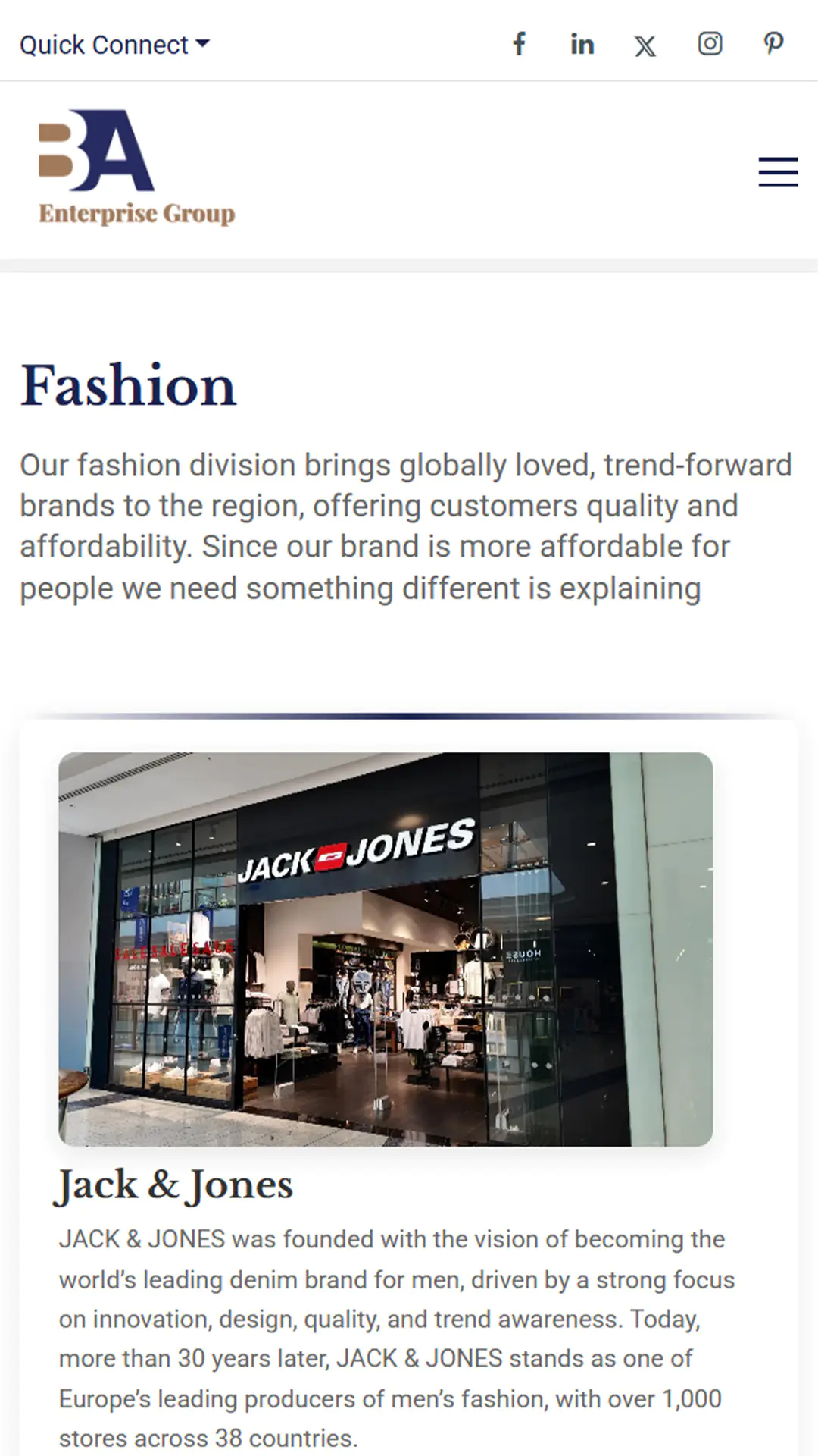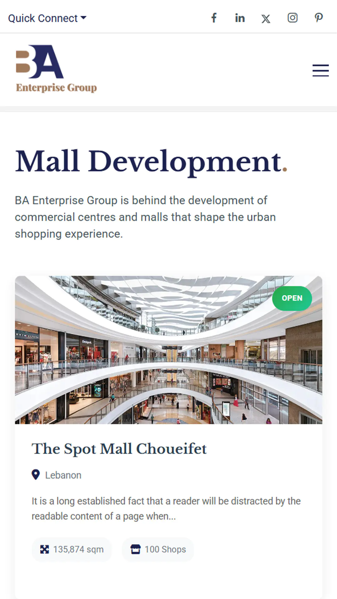 BA Enterprise Group is a multi-sector business platform operating across retail, F&B, real estate, and mall development. The website showcases their commitment to quality, ethical practices, and long-term partnerships. Our solution highlights their credibility with clear navigation, strong visuals, and professional brand-focused messaging.