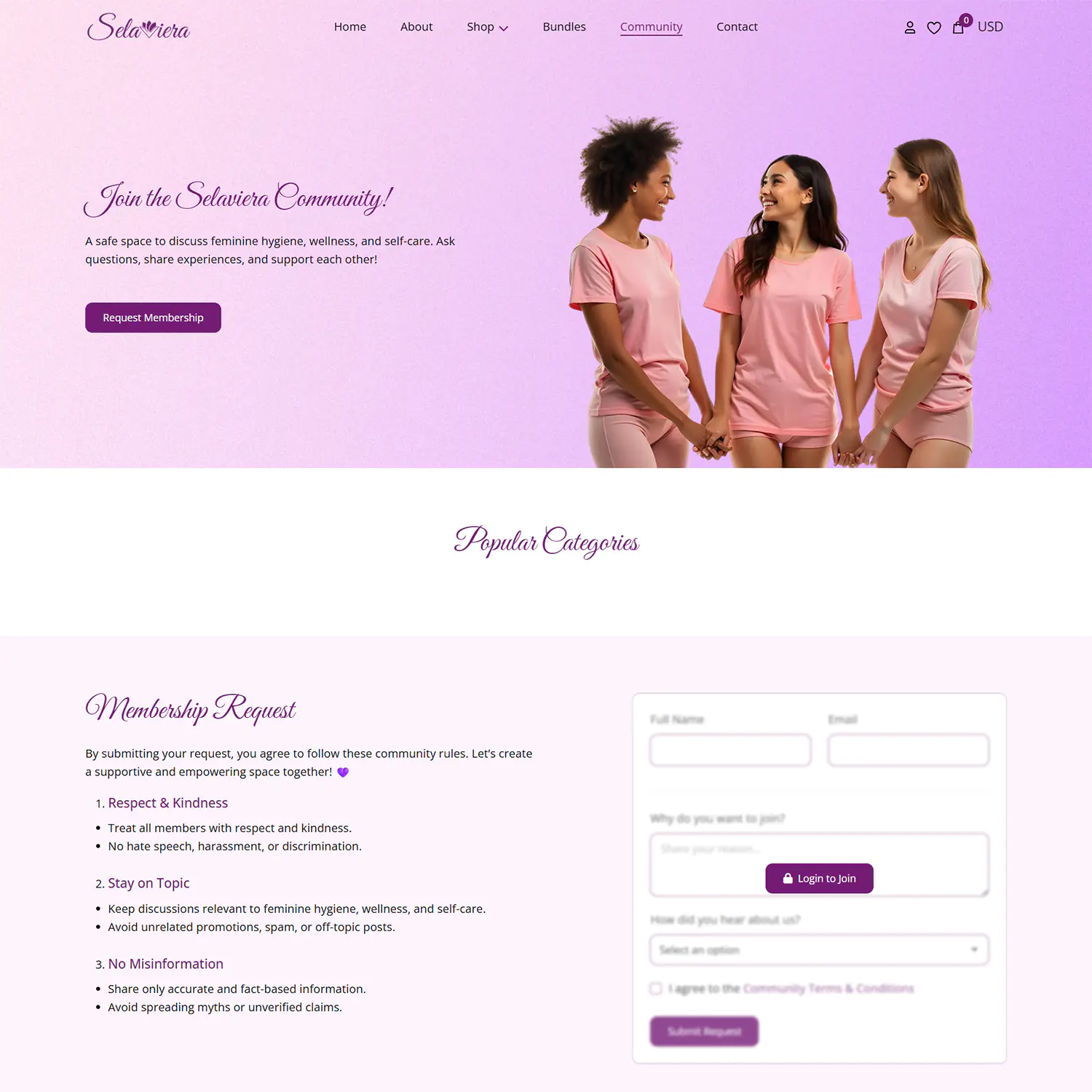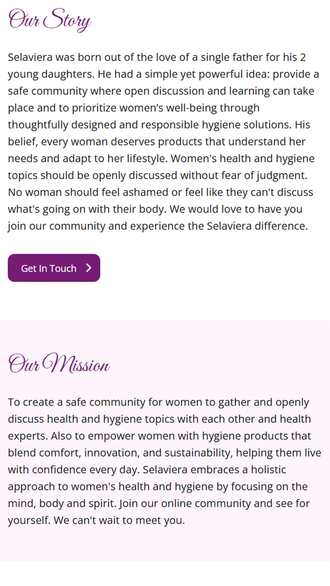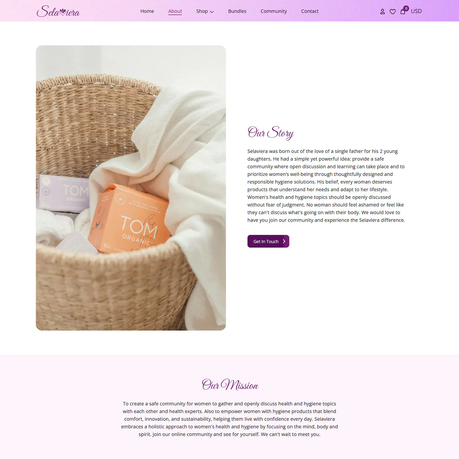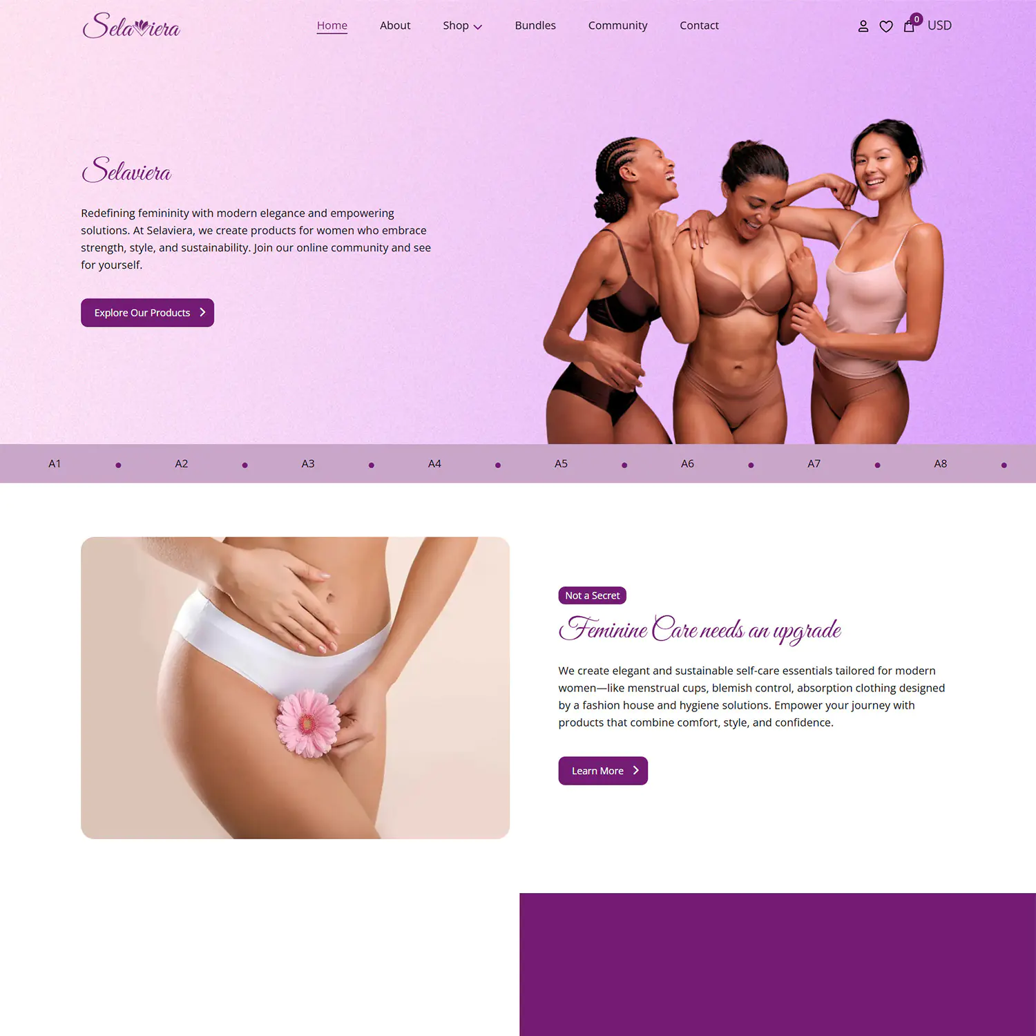 Selaviera is a women-focused brand combining self-care products, education, and community into a single digital platform. The brand aims to empower women through accessible hygiene and wellness solutions while fostering a safe, supportive environment for learning, discussion, and connection around women’s health and well-being.