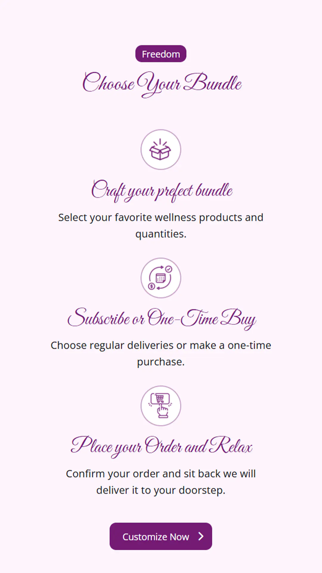 - E-Commerce Platform: A seamless online shopping experience allowing users to browse and purchase women’s self-care and hygiene products. The Purchasing Journey includes bundle products and recurrent orders for convenience.