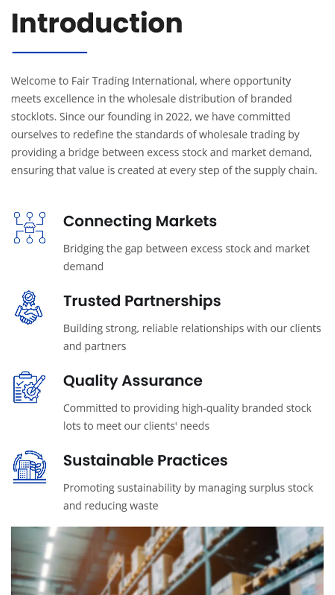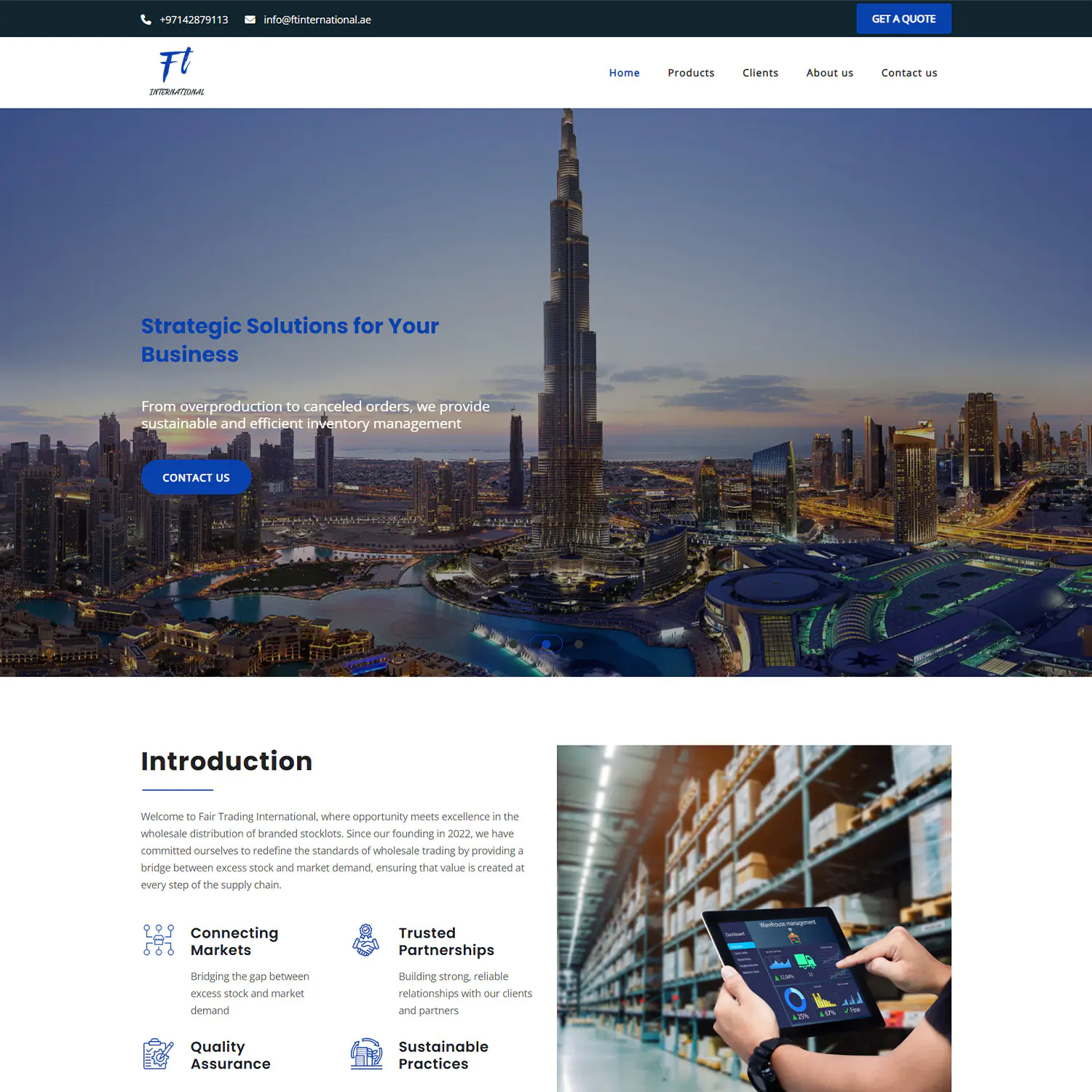 The FT International website successfully positions the company as a credible, professional wholesale partner in the global surplus stock market. It effectively communicates complex surplus inventory solutions in a simple and engaging way, supports lead generation through clear contact points, and reinforces FT International’s commitment to sustainable inventory solutions and global distribution.