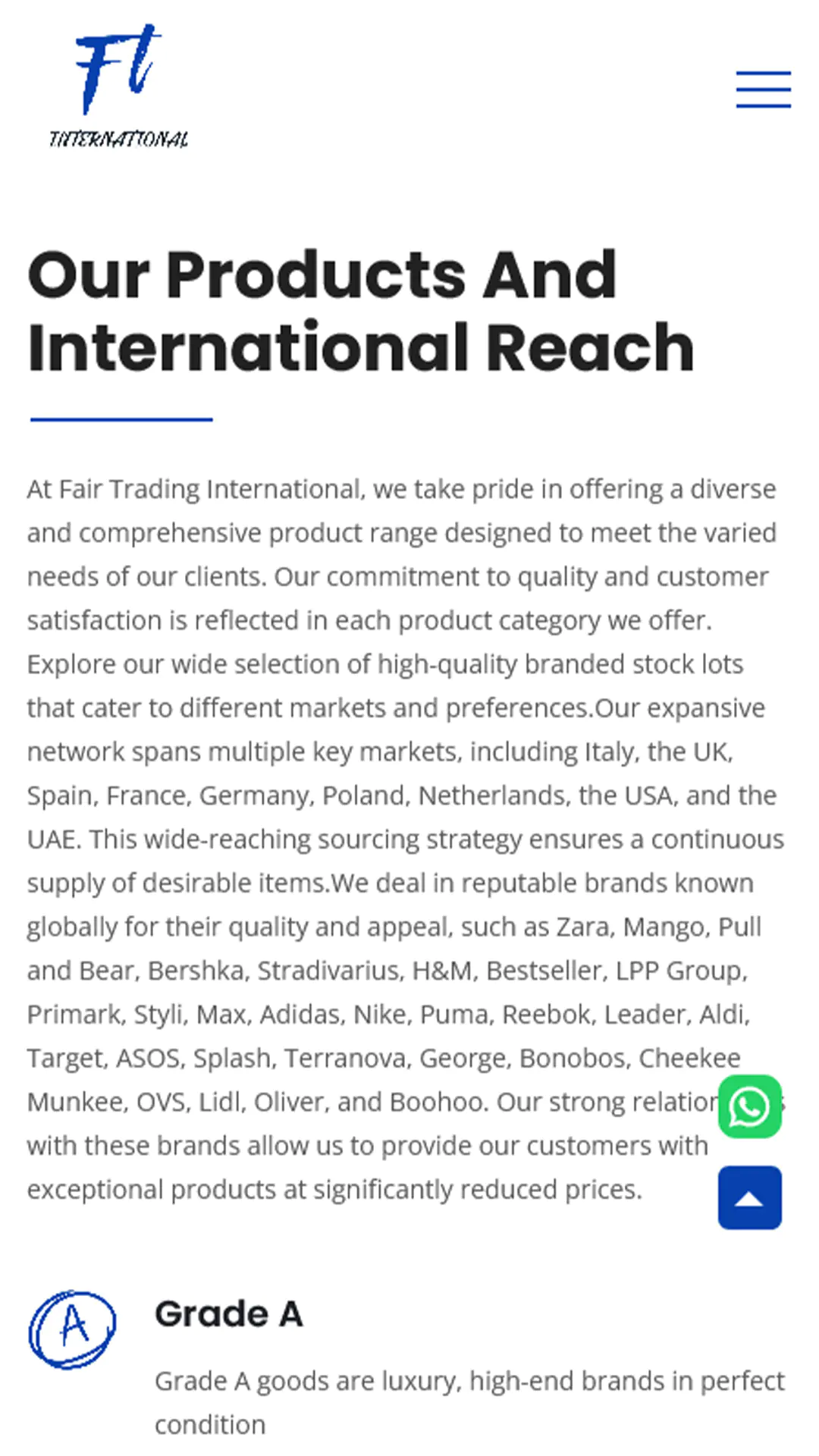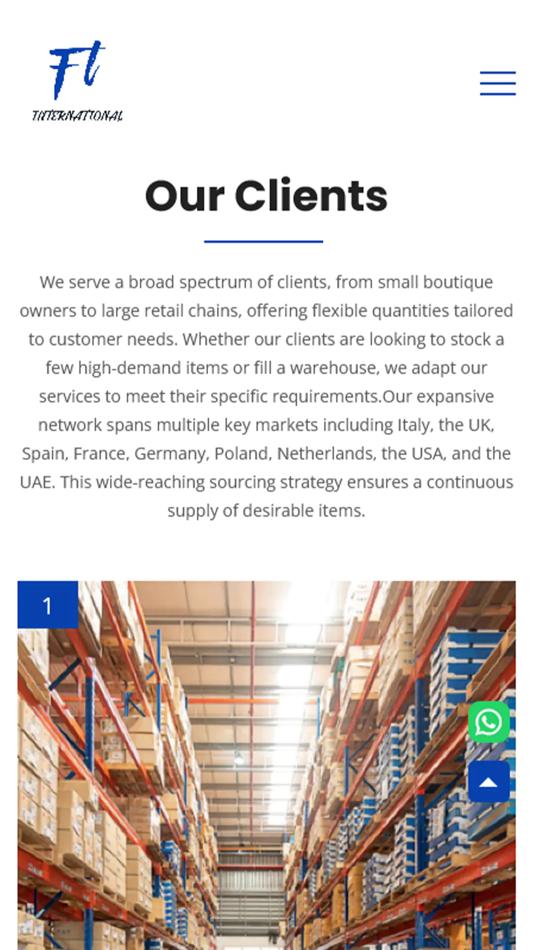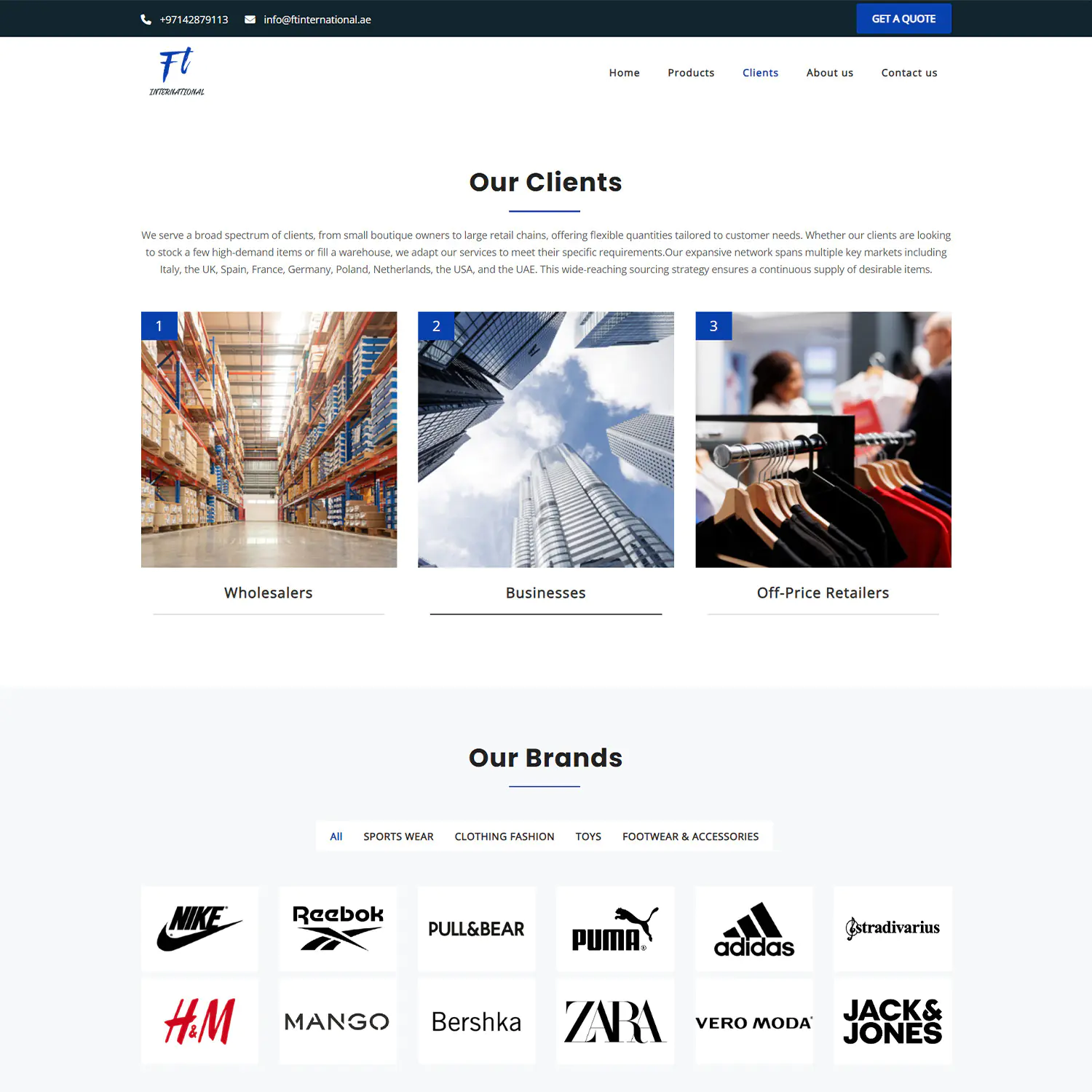 The main objective of the FT International website was to create a clear, professional online presence that showcases the company’s wholesale trading capabilities, highlights its global reach and extensive branded product range, and drives inquiries from off-price retailers and wholesale partners.
