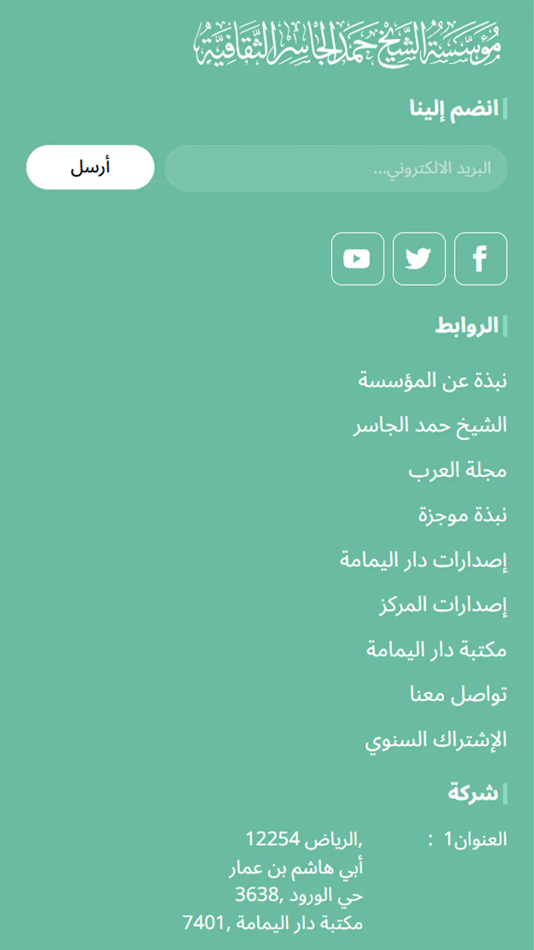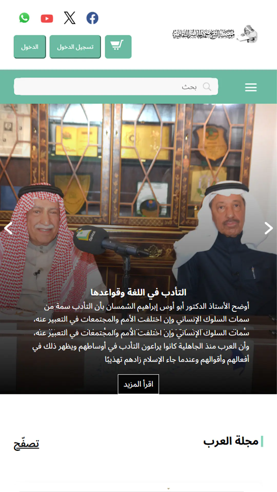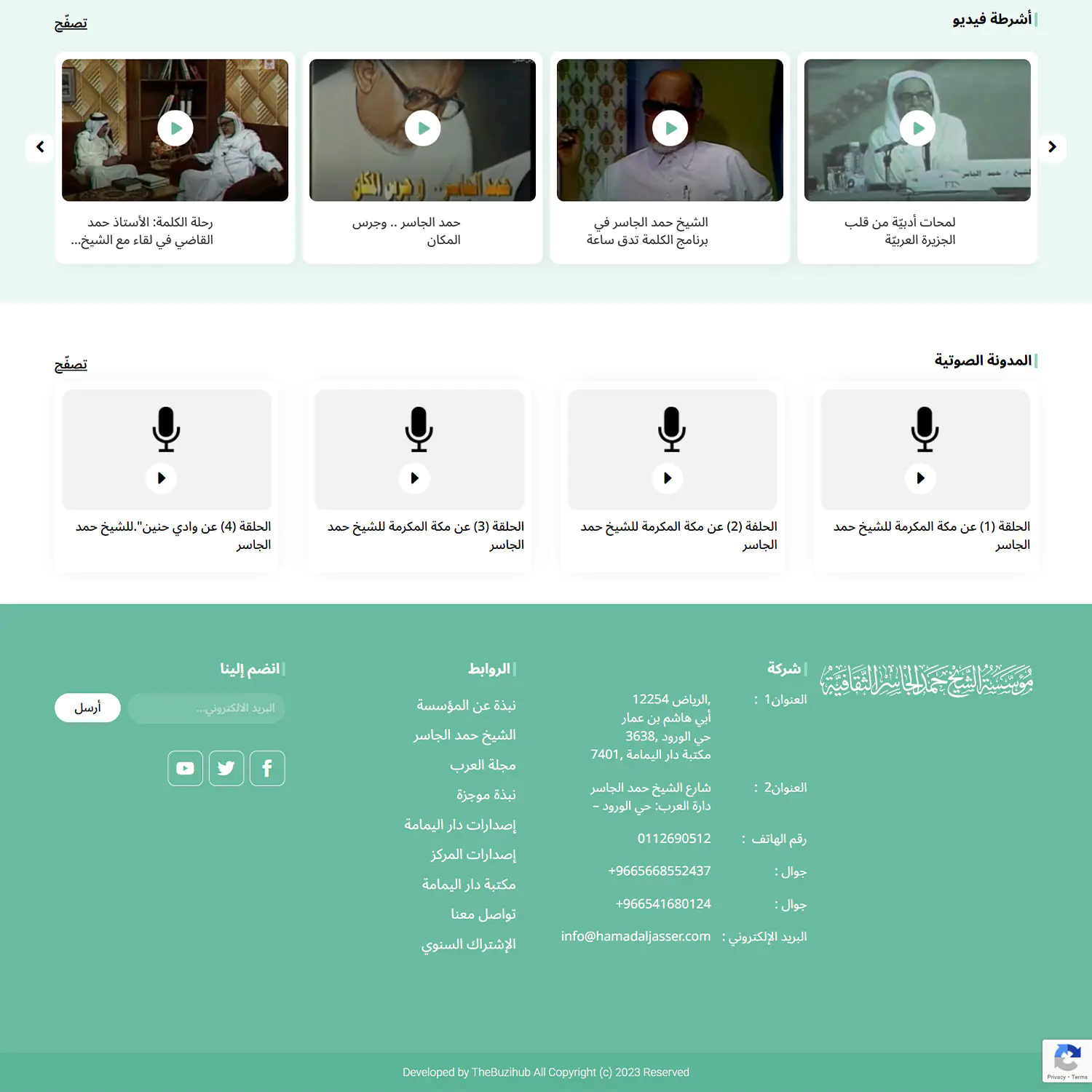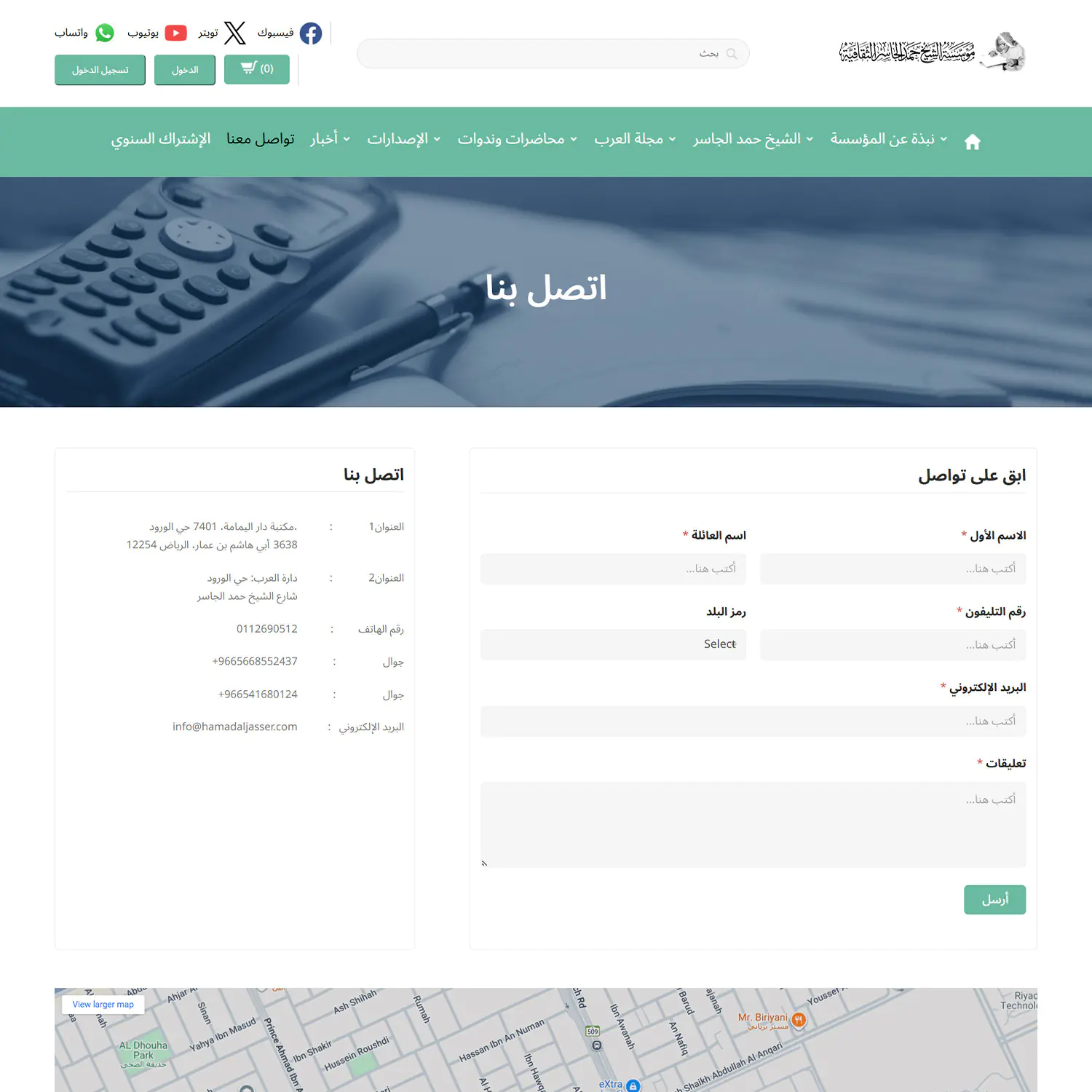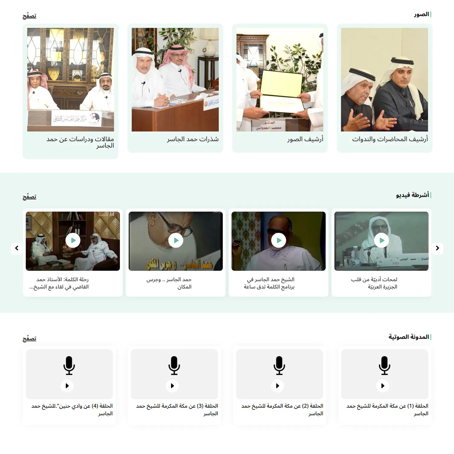 Hamad AlJasser website represents the cultural and scholarly legacy of Sheikh Hamad Bin Mohammed Al Jasser ; a pioneering Saudi journalist, historian, and author. The platform serves as a digital resource hub for his writings, studies, publications (including al-Arab magazine), and the cultural initiatives of the Hamad Al Jasser Cultural Center, which preserves and promotes Arab heritage and historical research.