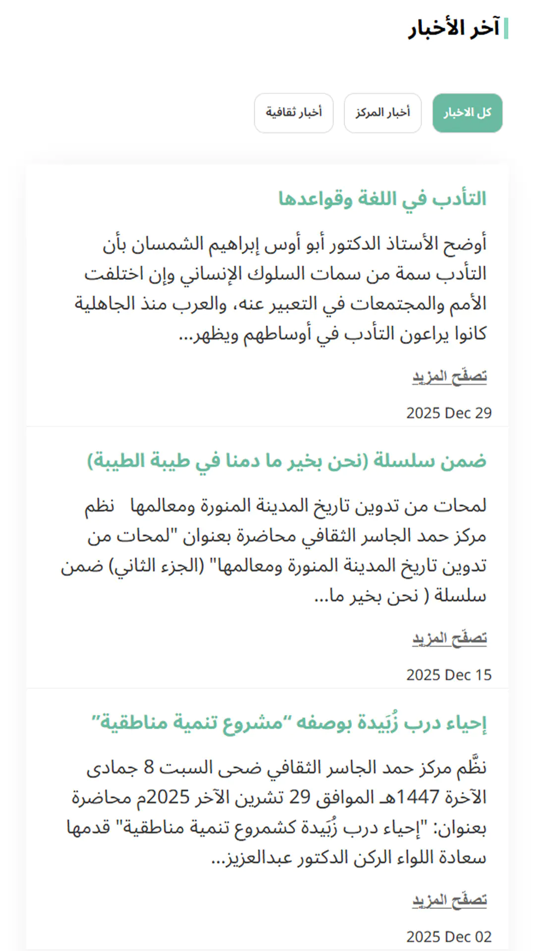 - Multilingual Considerations: Accommodating primarily Arabic content while making the site navigable for broader audiences familiar with the legacy of Hamad Al Jasser.