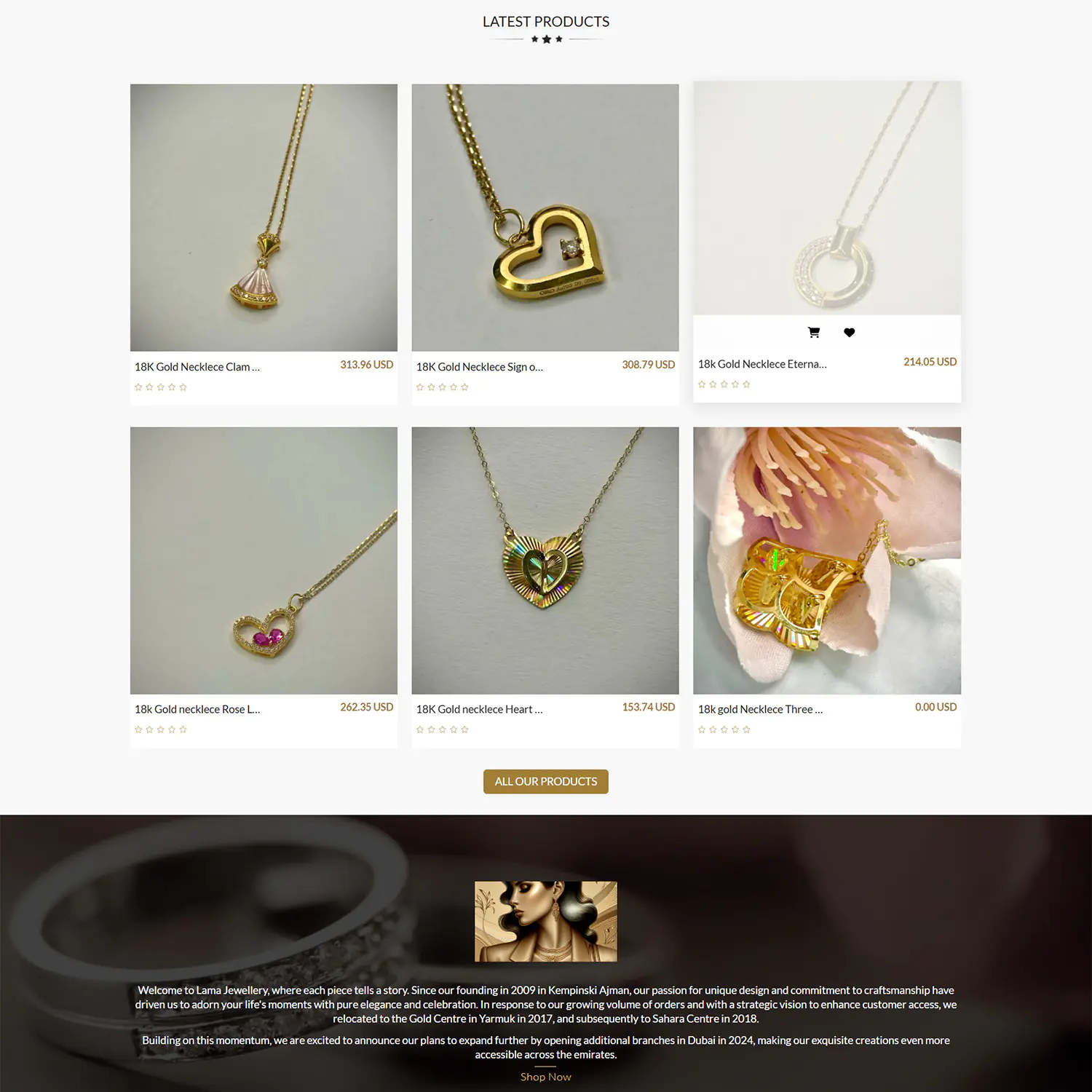 The Lama Jewelry platform delivers a technically advanced yet user-friendly jewelry e-commerce system. The client benefits from:
