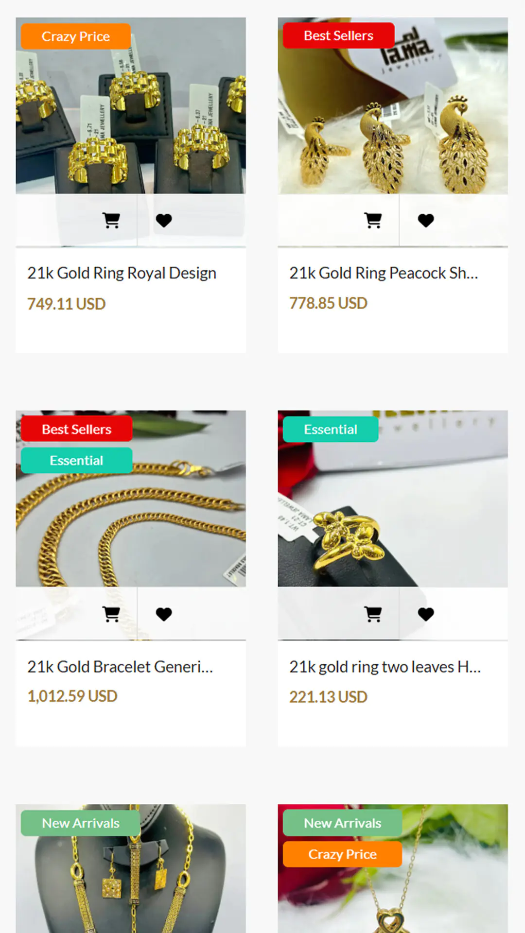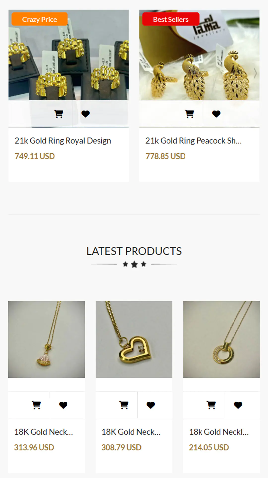- Live Gold & Metal Price API Integration: Integrated a live API that updates gold prices on an hourly basis, ensuring all product prices accurately reflect real-time market fluctuations.