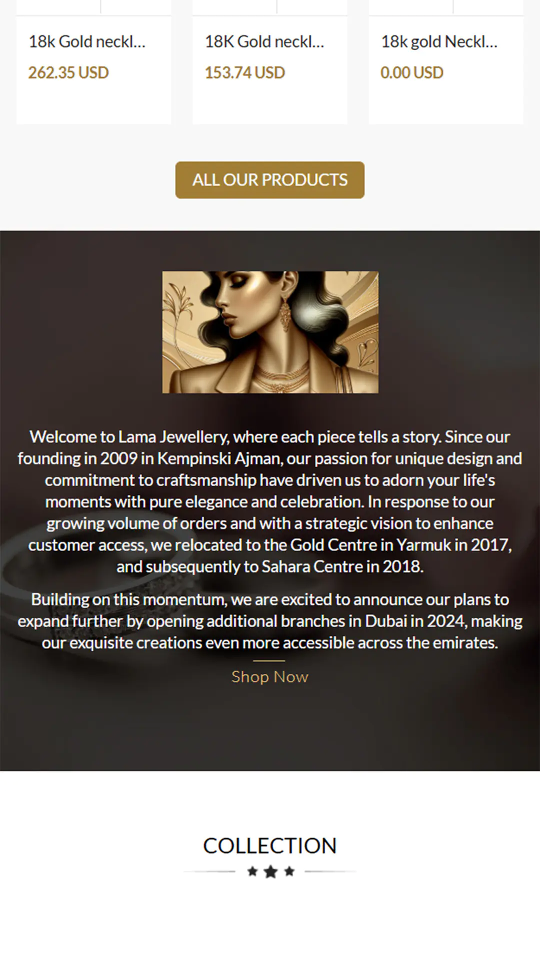 The objective of the Lama Jewelry website was to create a premium e-commerce experience that: